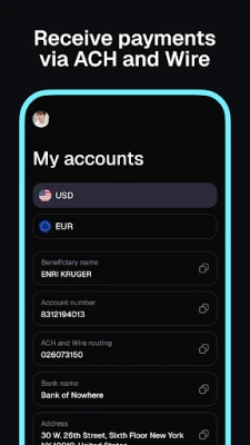 • Receive USD payments