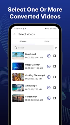 With video to mp3 converter app, you can cut/trim video files and convert video to audio with many options in a few seconds. You can extract high quality songs from video and converting one or more videos simultaneously.